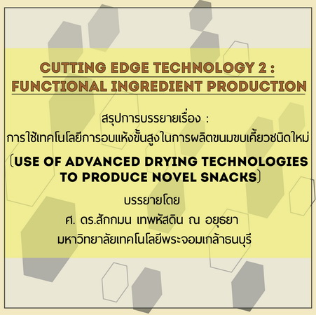 ที่ผ่านมาเราได้ทำความรู้จักกับเทคโนโลยีการอบแห้งขั้นสูง รวมไปถึงการใช้คลื่นไมโครเวฟในการอบแห้ง กันไปแล้ว ในหัวข้อสุดท้ายของการบรรยายเราจะไปทำความเข้าใจกันในเรื่องของ “การปรับสมดุลย์เอ็นแคปซูเลทน้ำมันสุขภาพในผงสเปรย์ดราย” โดย ศ.ดร. ภาวิณี ชินะโชติ นายกสมาคมวิทยาศาสตร์และเทคโนโลยีทางอาหารแห่งประเทศไทย (FoSTAT) เนื้อหาจะมีเรื่องอะไรบ้าง ตามไปอ่านกันได้เลย